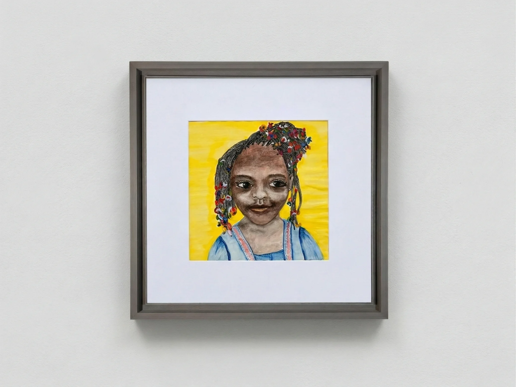 어린아이가 지닌 고결한 존엄성을 빛으로 그려낸 초상화. 따스한 황금빛 배경 위로, 알록달록한 구슬처럼 반짝이는 순수한 시선이 희망과 경이로운 세상을 이야기합니다.