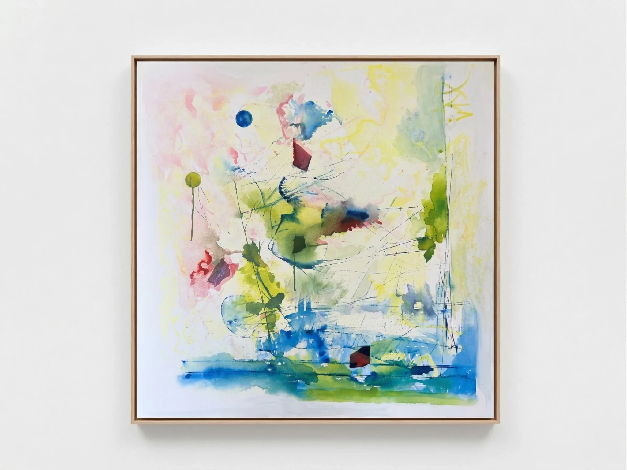 Ein Werk wie ein tiefer Atemzug an einem sonnigen Morgen – eine Komposition aus schwebenden Farben und feinen Linien, die wie flüchtige Notizen auf der Leinwand tanzen. Es feiert die Schönheit des Ungeplanten und die Freiheit des offenen Raums.